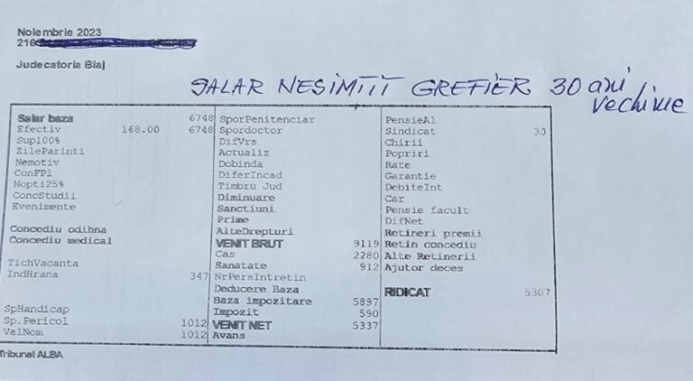 Având în vedere articolul de presă intitulat ”Ce salarii uriașe iau grefierii care fac grevă. Iau spor de praf, stres și condiții grele” pe site-ul www.newsweek.ro, în data de 08.12.2023, [...]